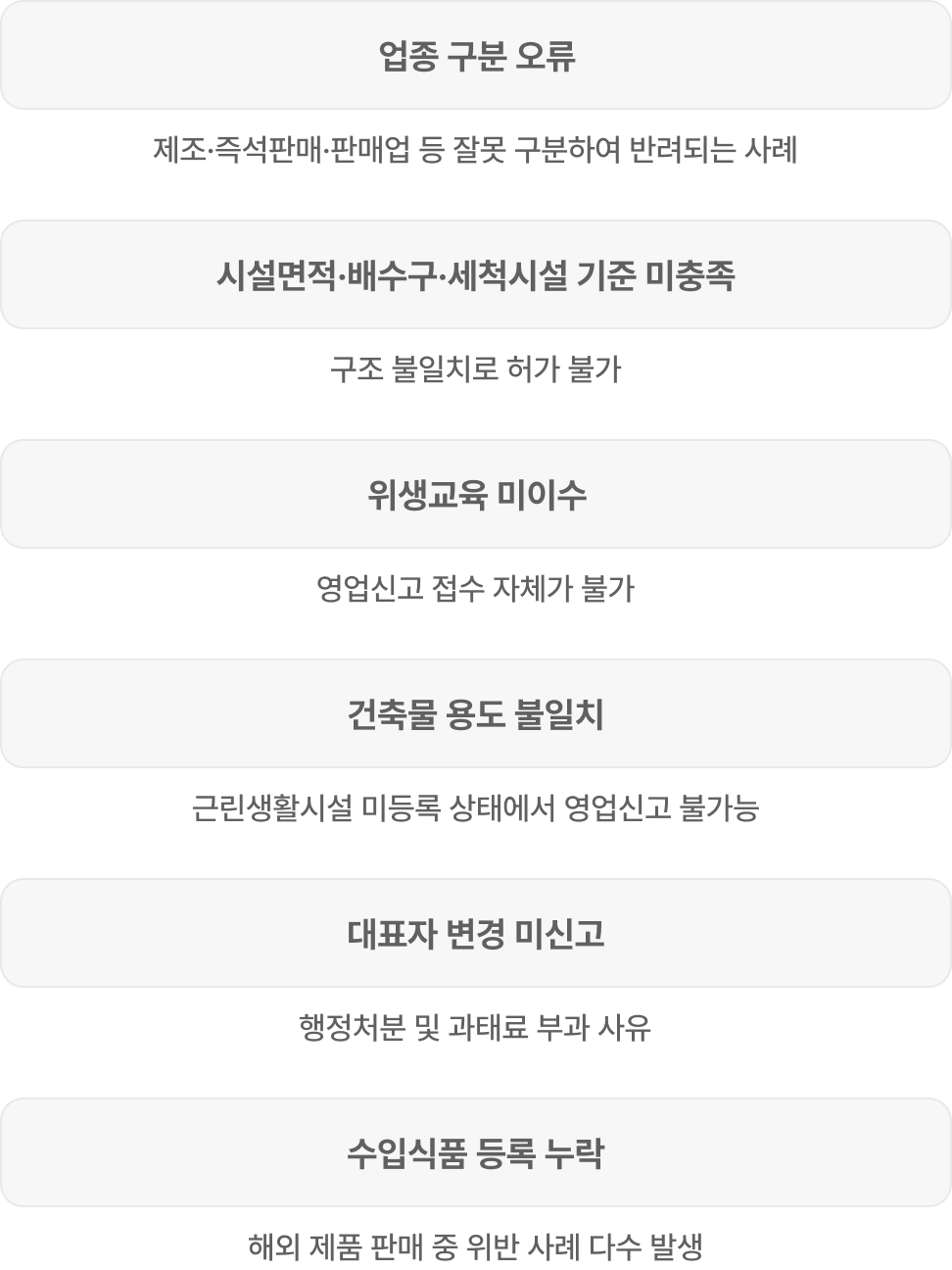 | 업종 구분 오류 | 제조·즉석판매·판매업 등 잘못 구분하여 반려되는 사례 |