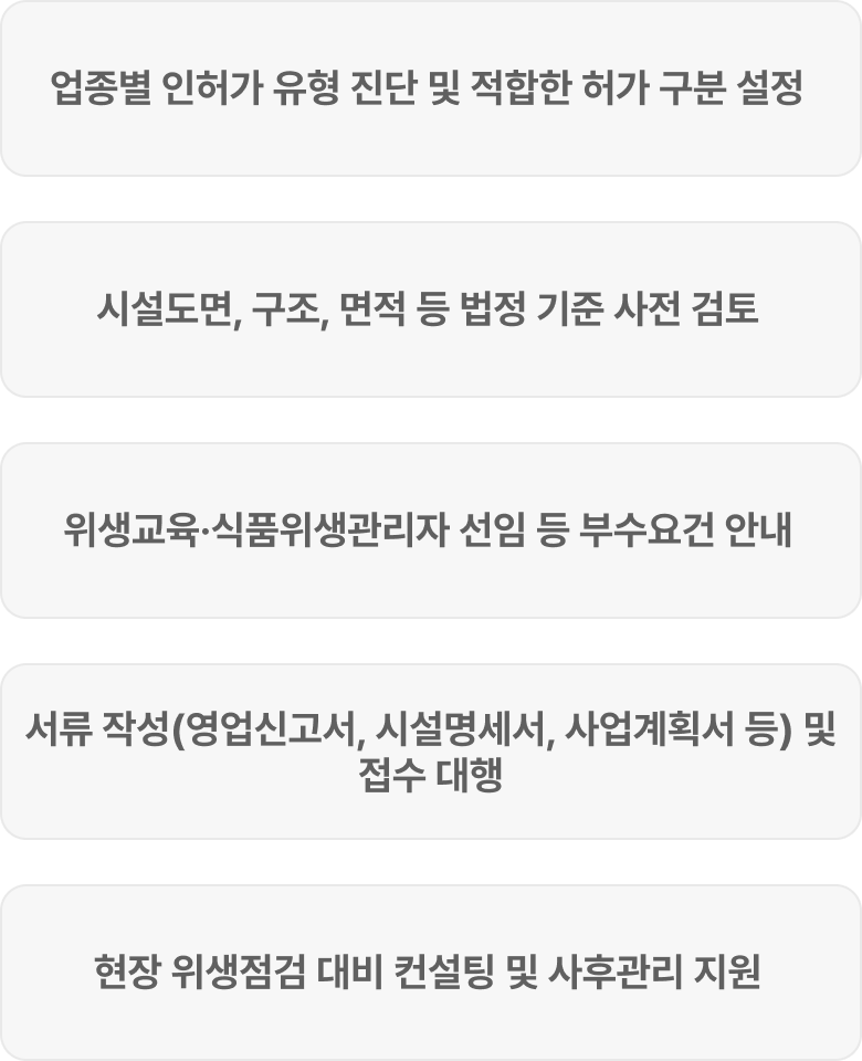 | 사전검사 및 현장심사 포함 | 허가 전 위생점검 및 구조확인 진행 |