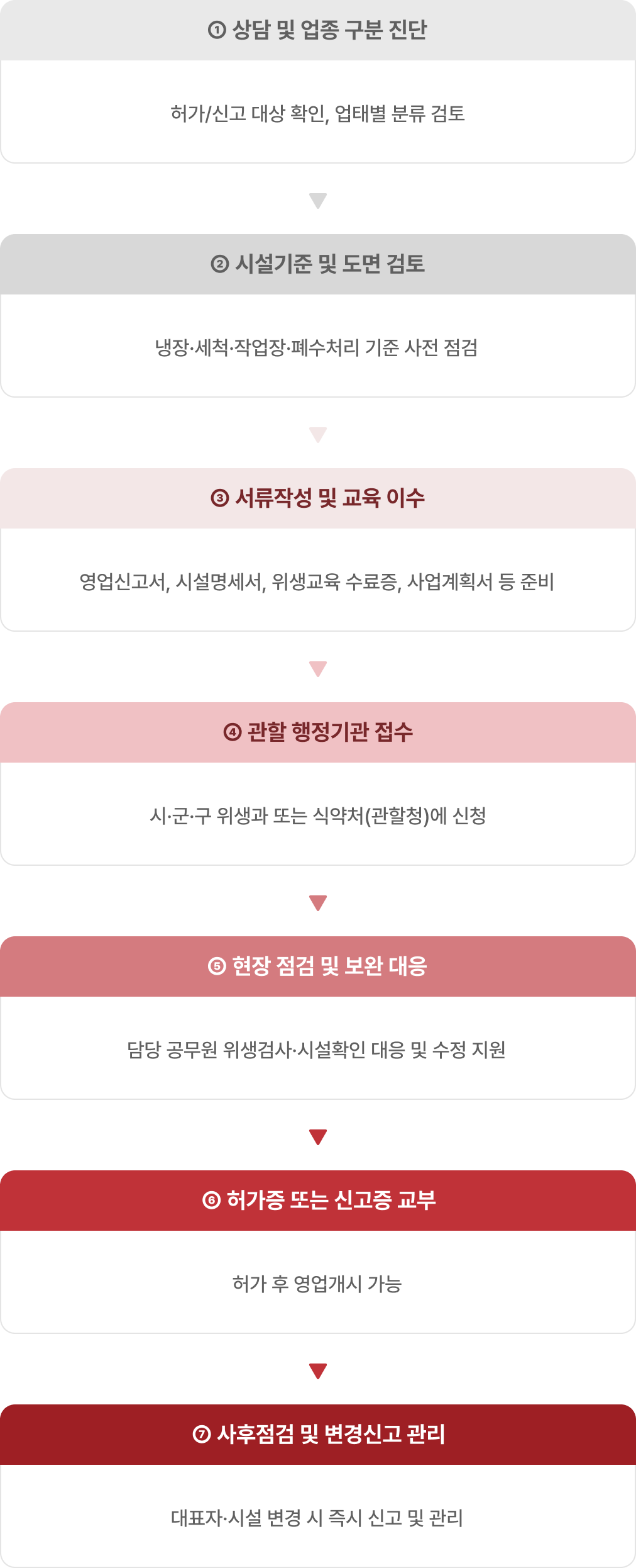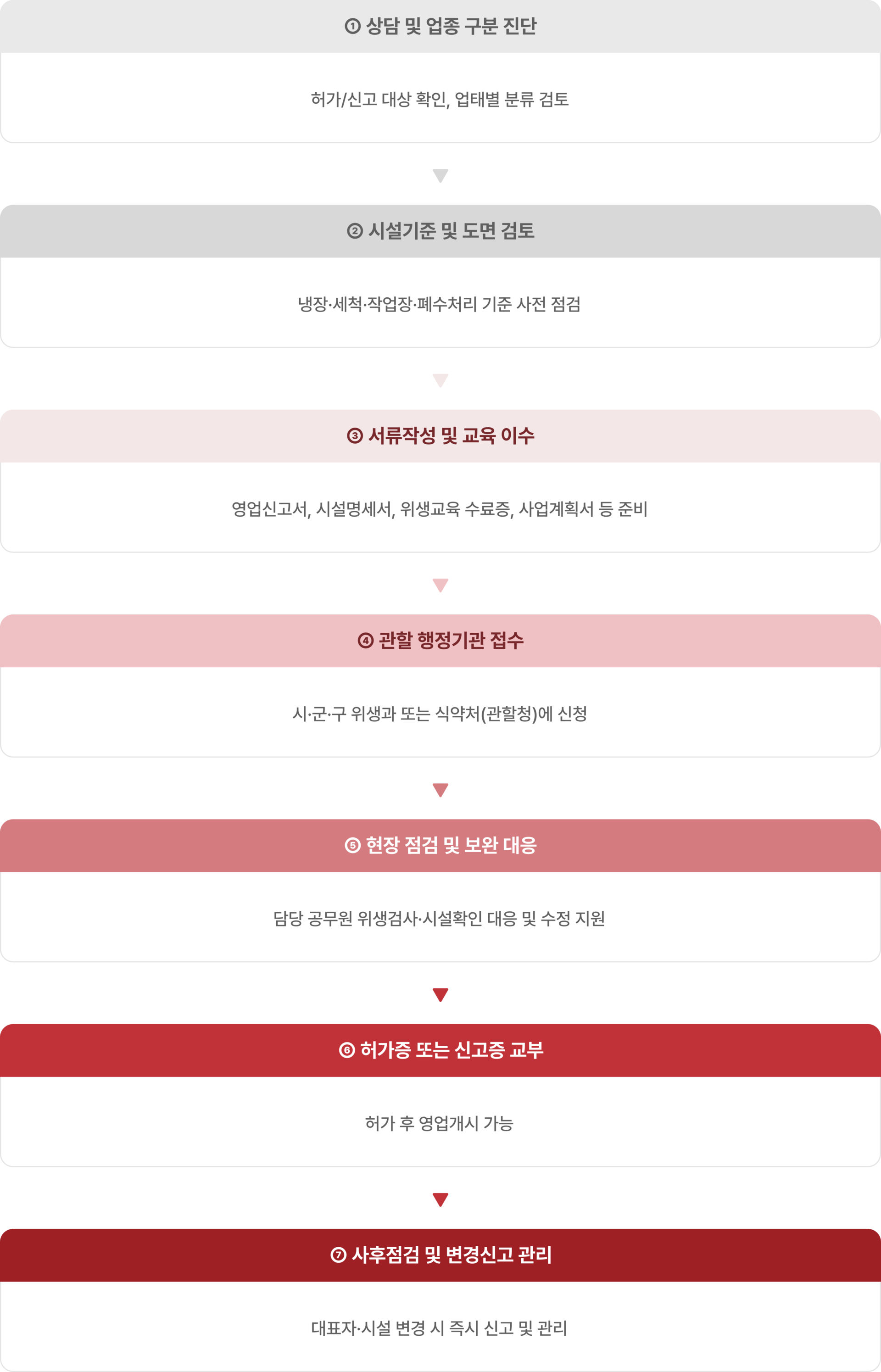 | 시설기준 엄격 | 냉장·냉동, 세척, 방충·방서, 작업장 구획 기준 필수 |