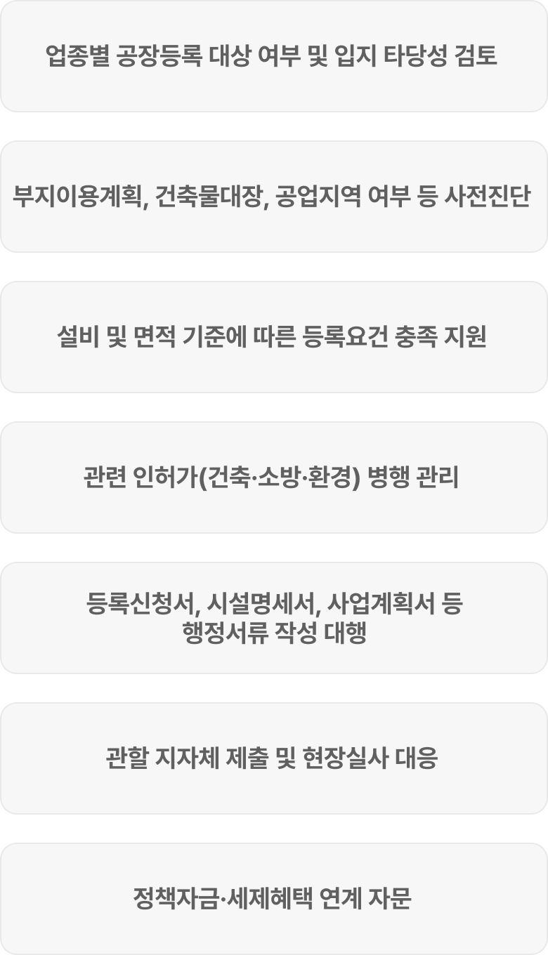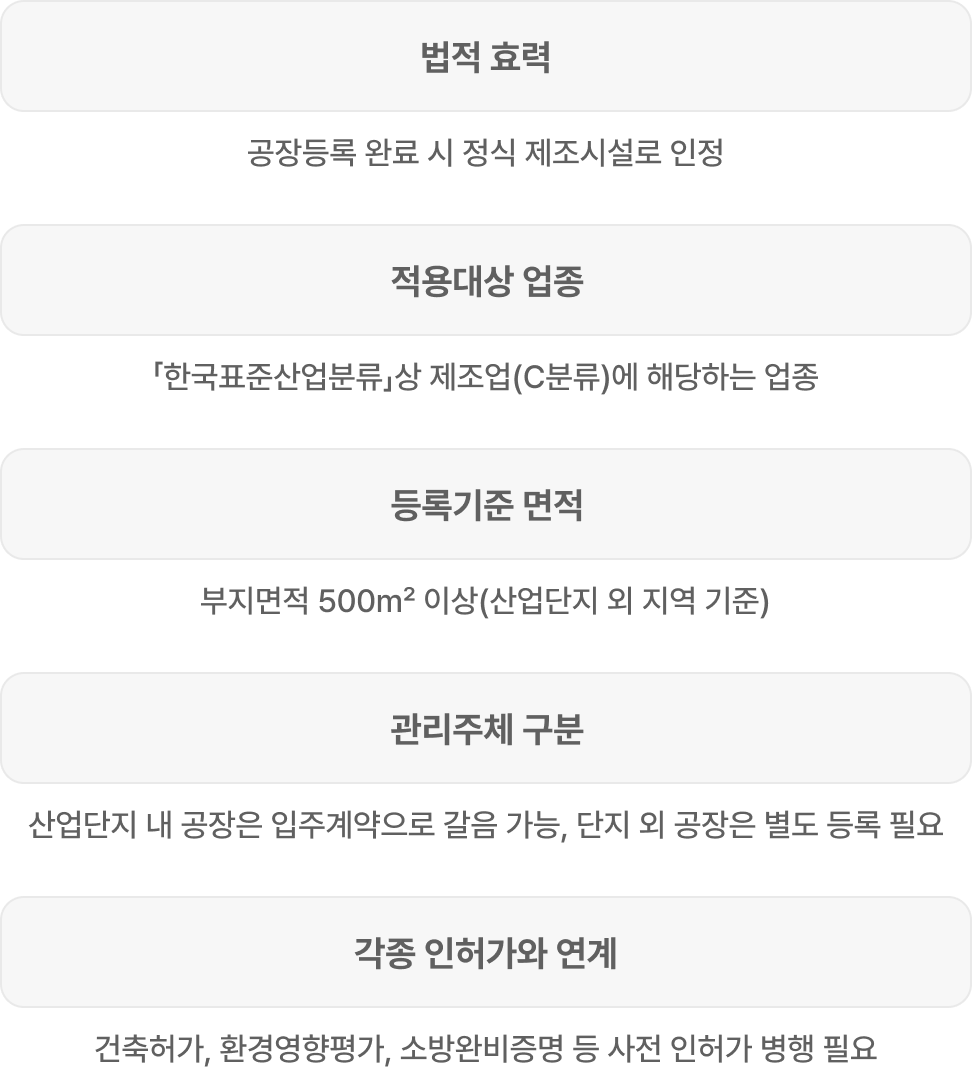 | 법적 효력 | 공장등록 완료 시 정식 제조시설로 인정 |