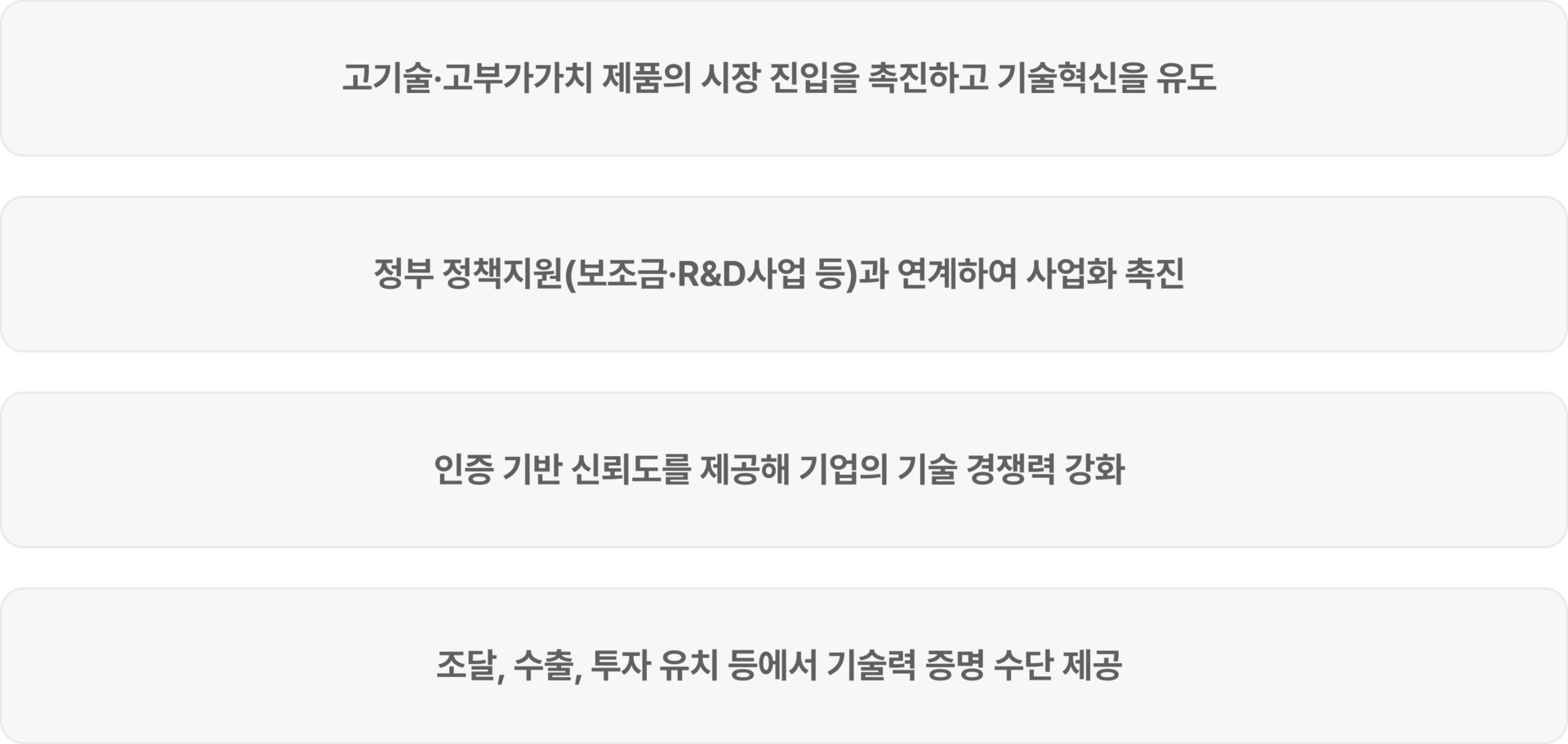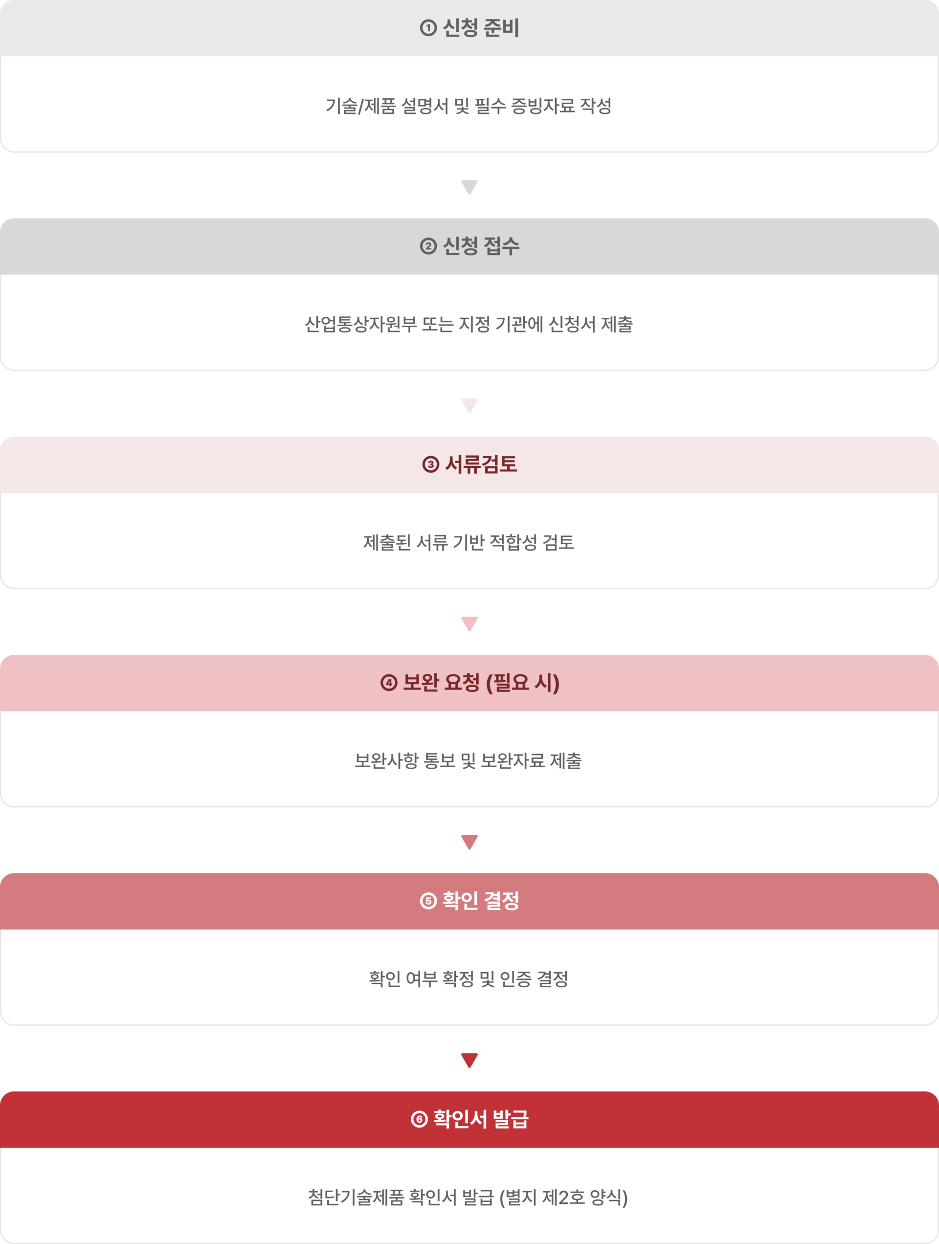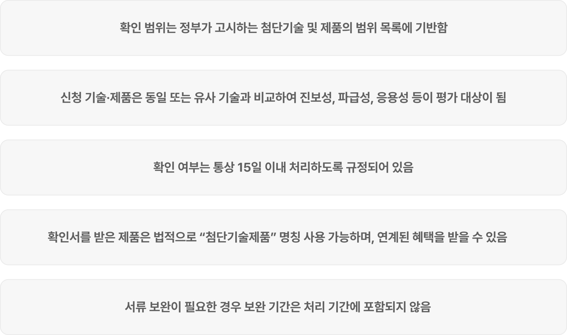 첨단기술제품 확인서는 단순한 기술표시가 아닌, 법령이 정한 범위에 부합하는 기술성과 제품성을 엄격히 검토하는 인증입니다.