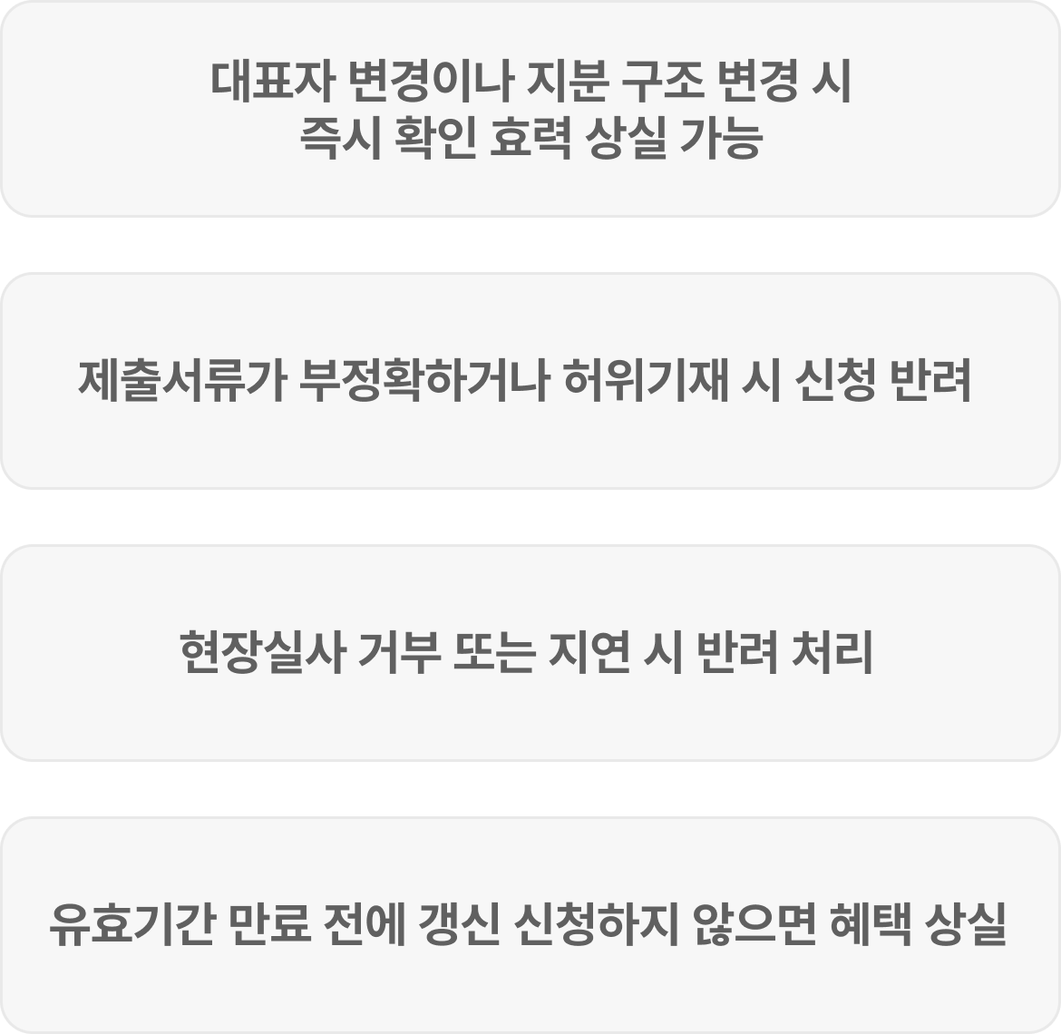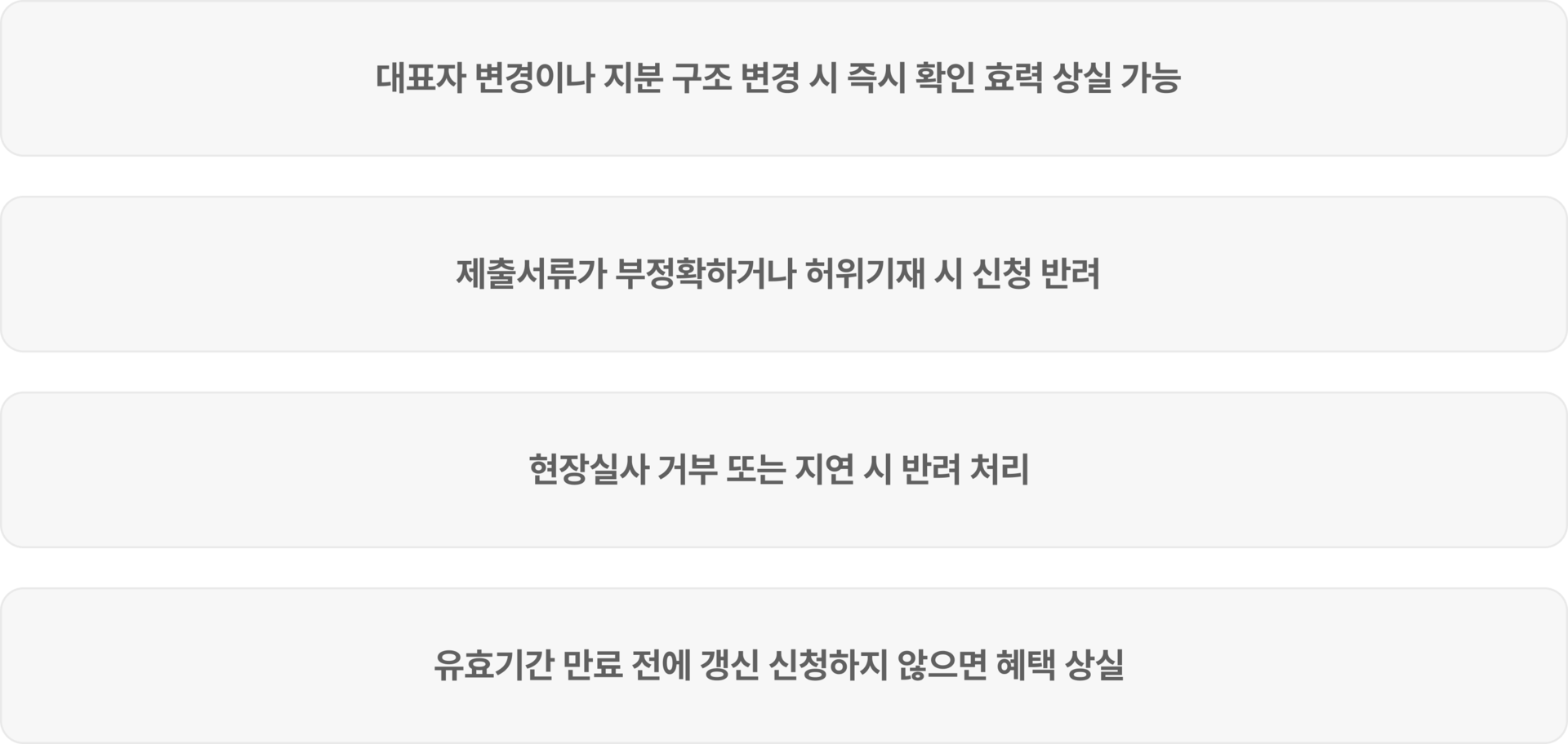 | 사업자등록 | 정상 사업을 영위 중이어야 함 |