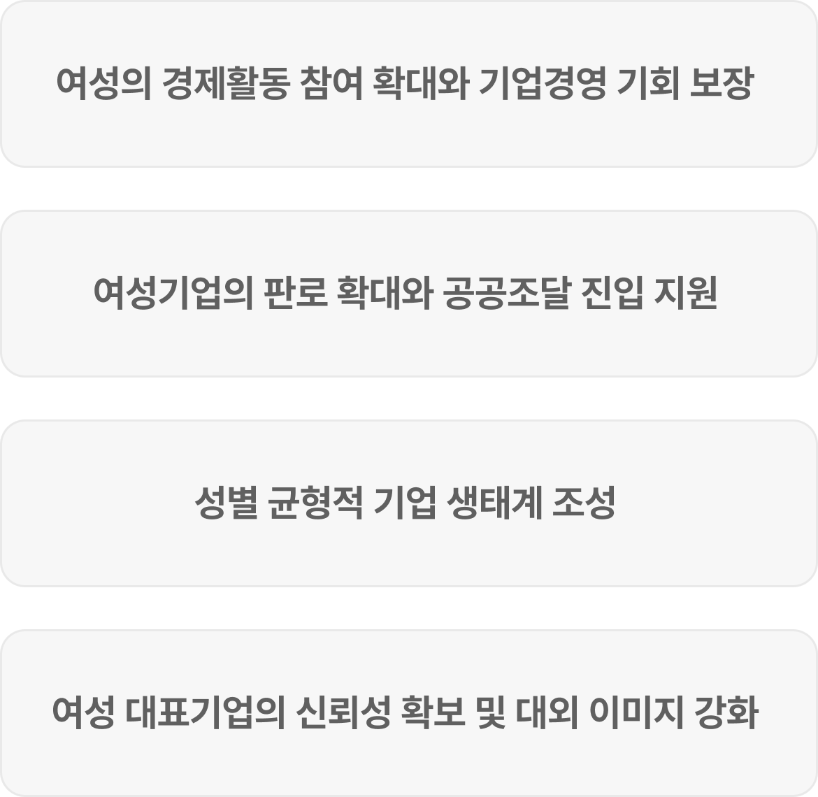 | 대표자 요건 | 법인 또는 개인사업자 모두 여성 대표자여야 함 |