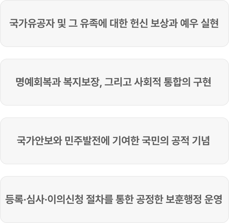 국가유공자의 명예와 권리를 지키는 조력자로 함께합니다.