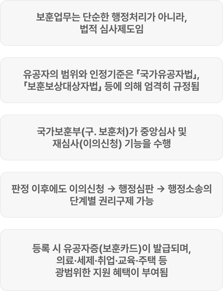 국가유공자 등록, 보훈보상 신청, 이의신청 및 행정심판 대응을 전문적으로 지원합니다.