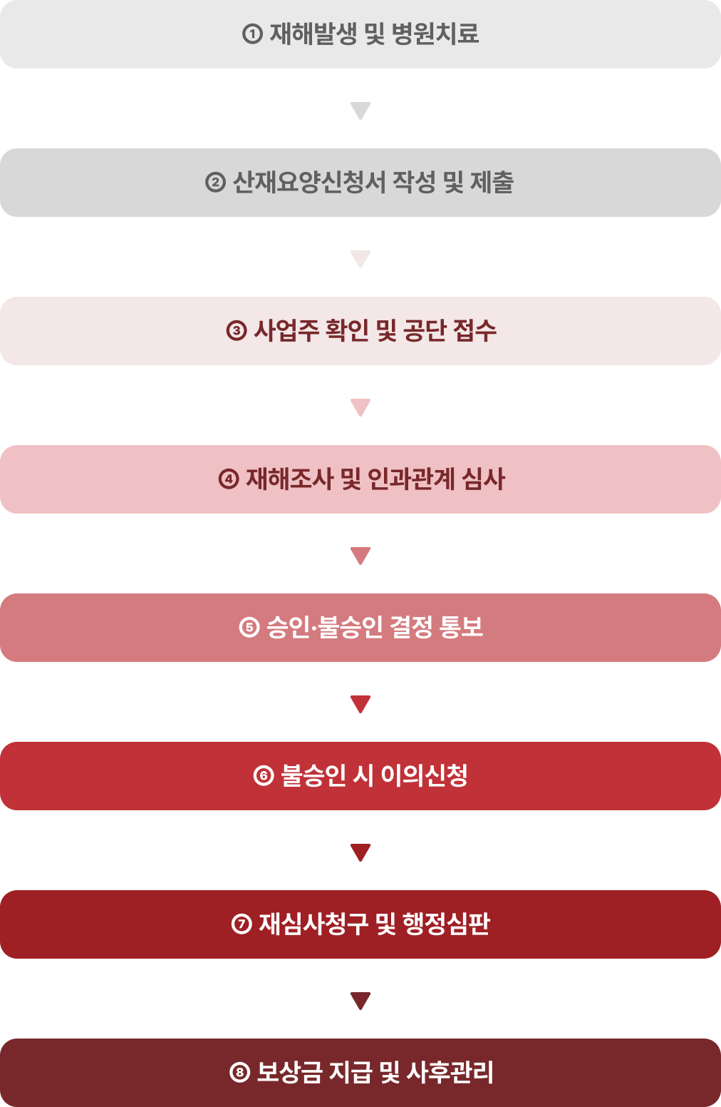 산재 신청, 불승인 이의신청, 재심사청구, 행정심판 단계까지 전문적으로 조력합니다.