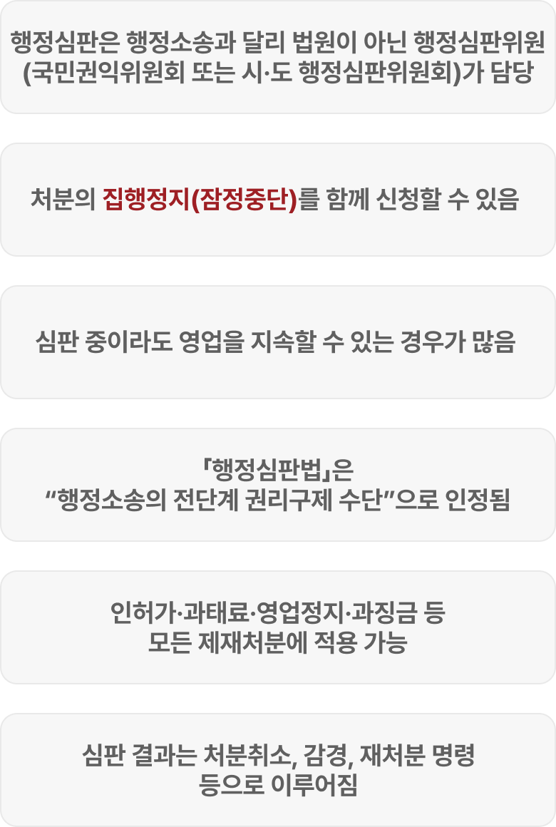 영업정지 행정심판이란, 행정청(지자체·관할 부처 등)이 법령 위반을 이유로 사업자에게 내린 영업정지·영업허가취소 등