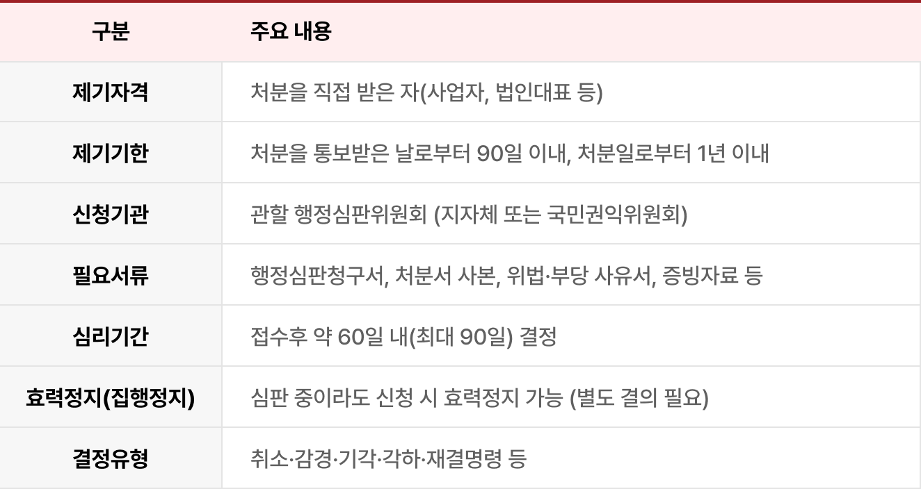 영업정지는 기업의 위기이지만, 행정심판은 그 위기를 되돌릴 수 있는 절차입니다.
