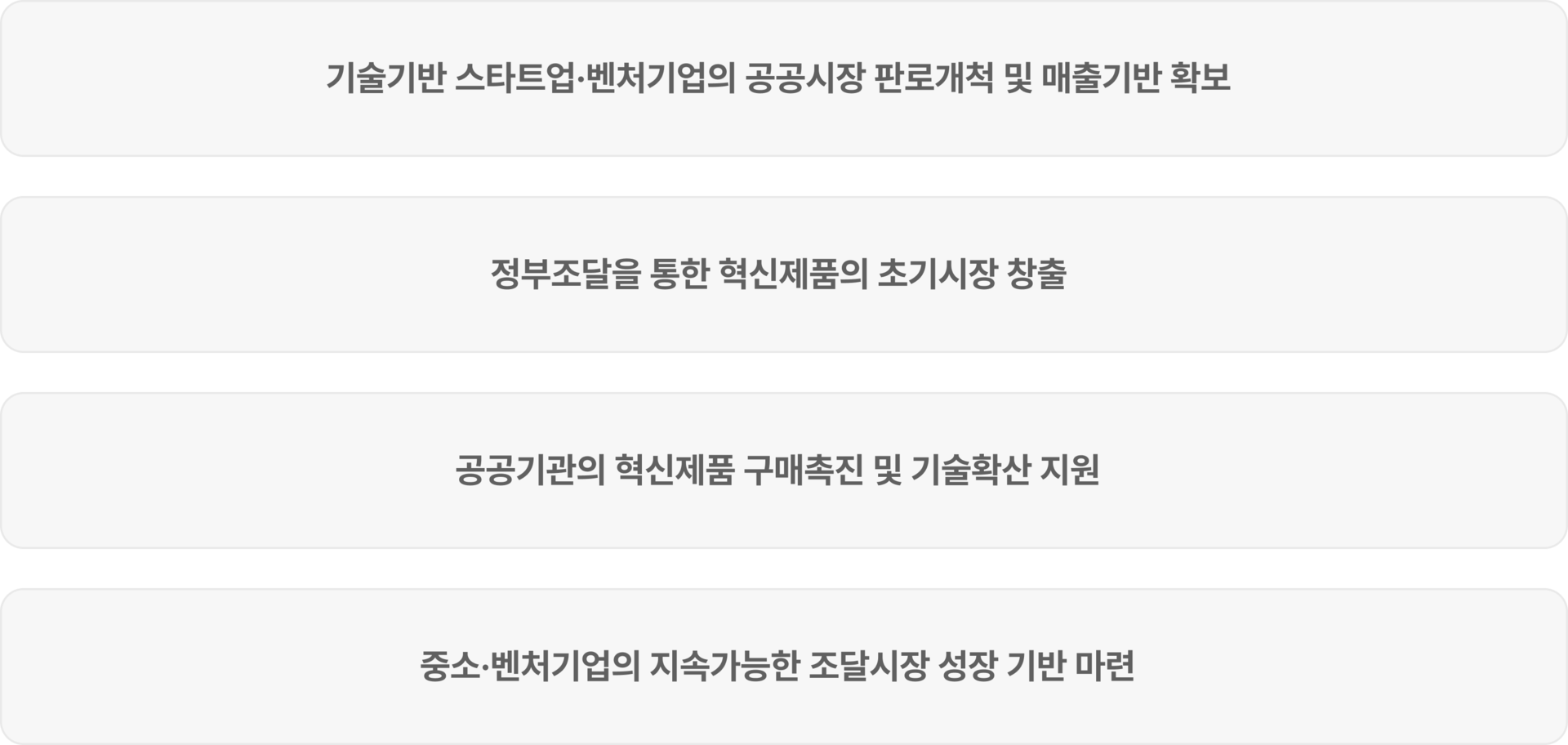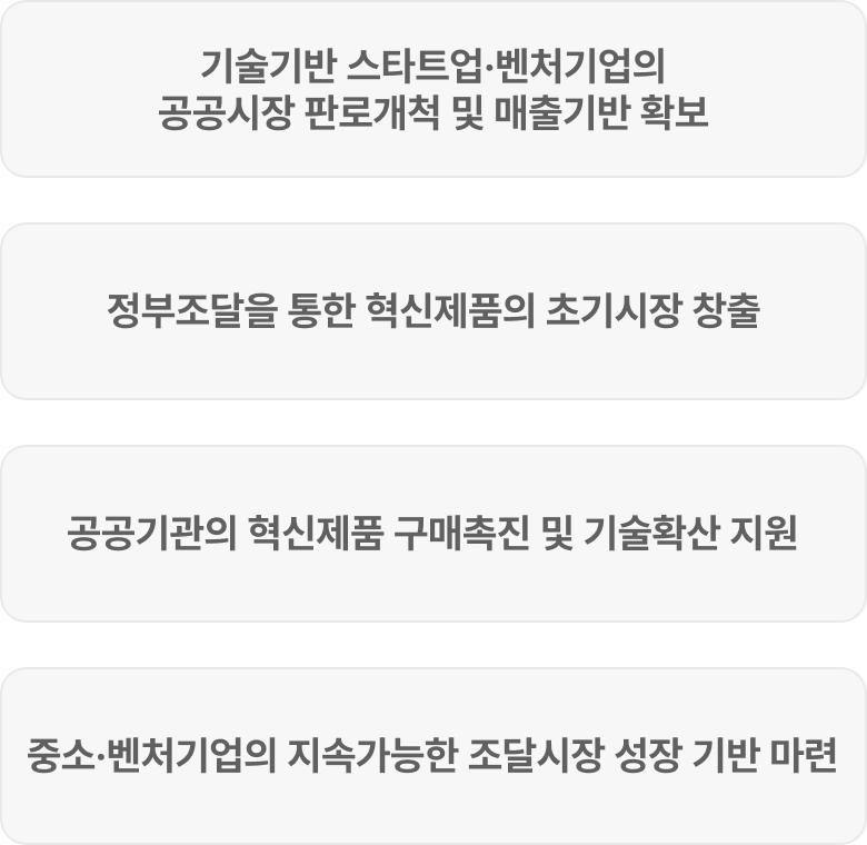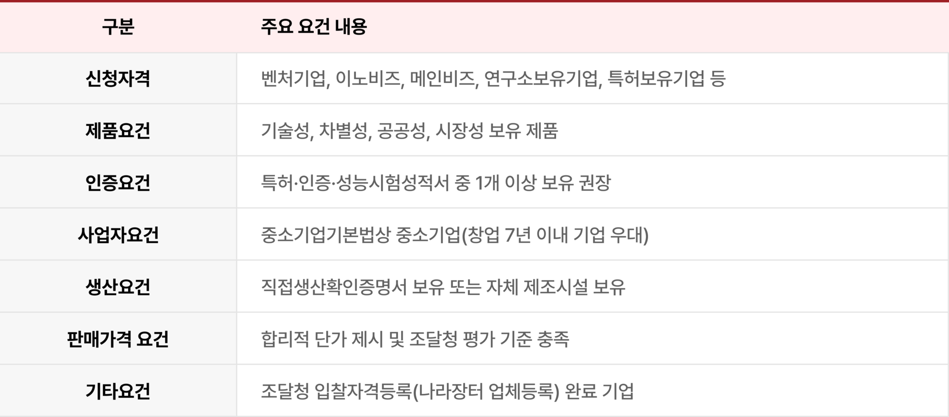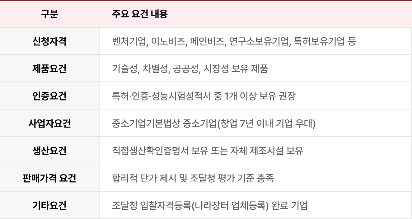 혁신성과 기술성을 갖춘 중소·벤처기업의 제품을 등록해 공공기관이 직접 구매할 수 있도록 지원하는 제도입니다.