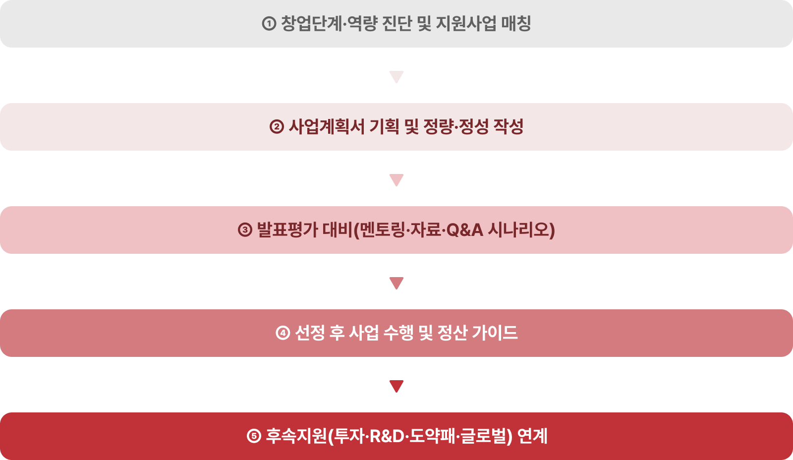 정부·지자체·공공기관이 창업 준비 → 시장진입 → 고성장 → 글로벌 확장 단계까지