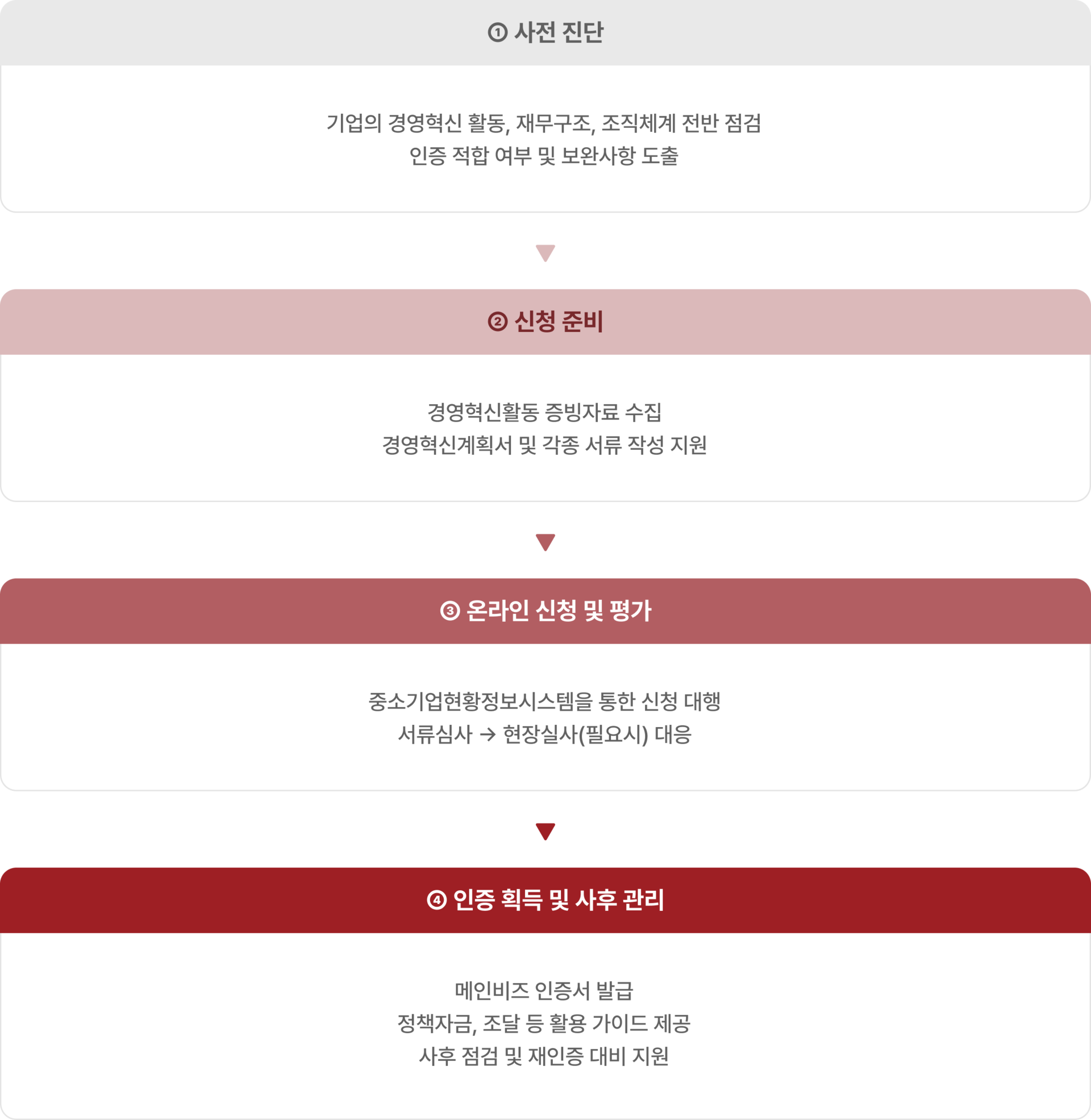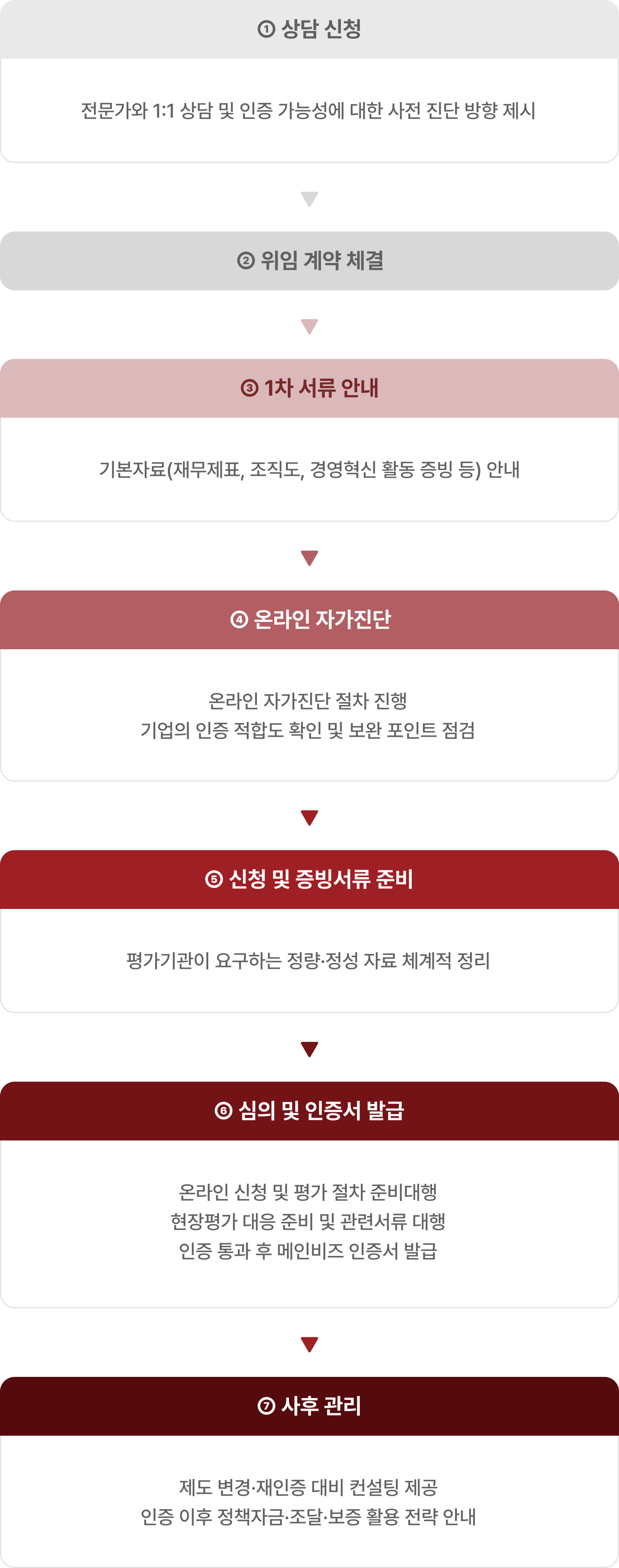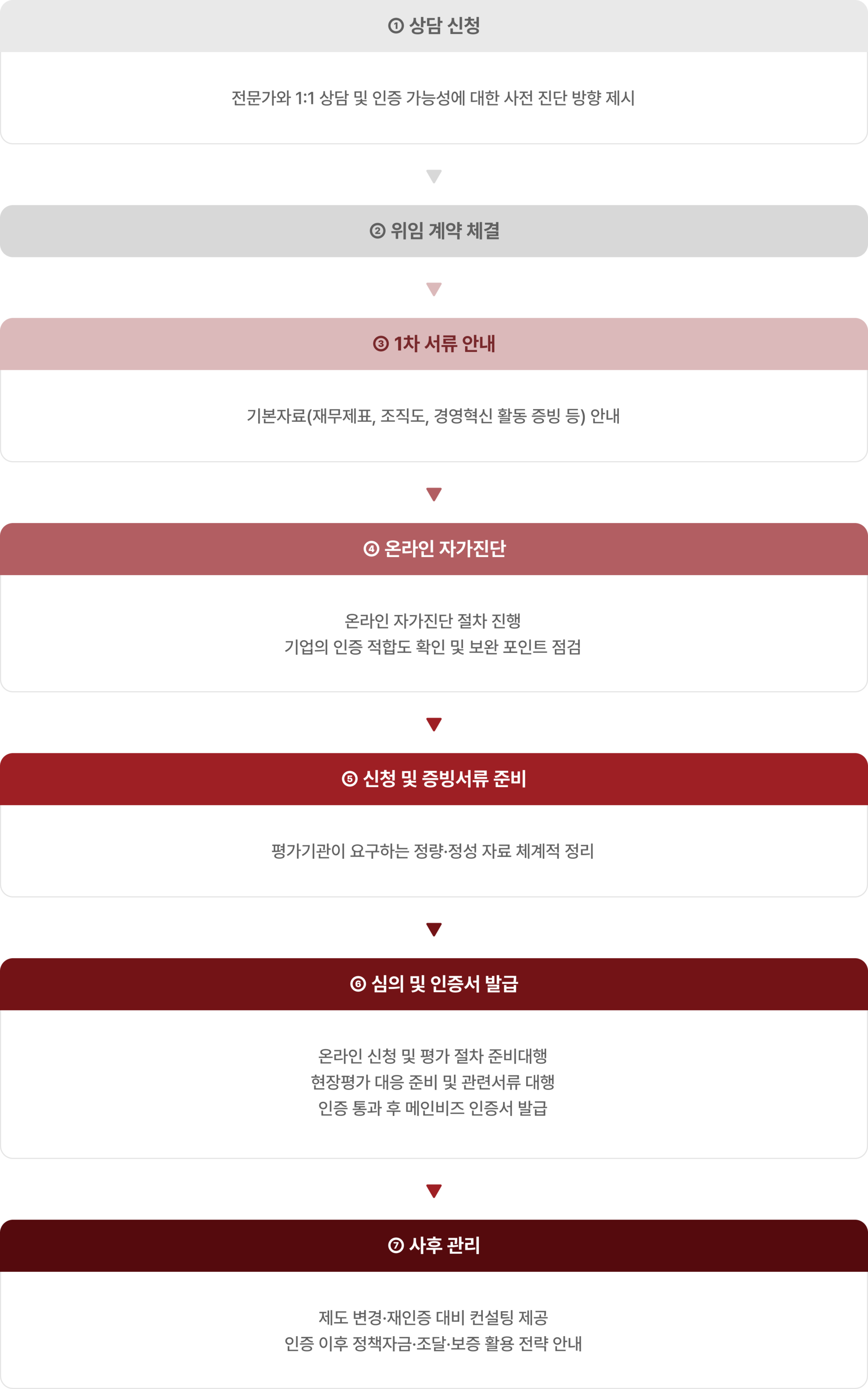 단순한 신청 절차를 넘어, 전략적 인증 프로세스를 제공합니다.