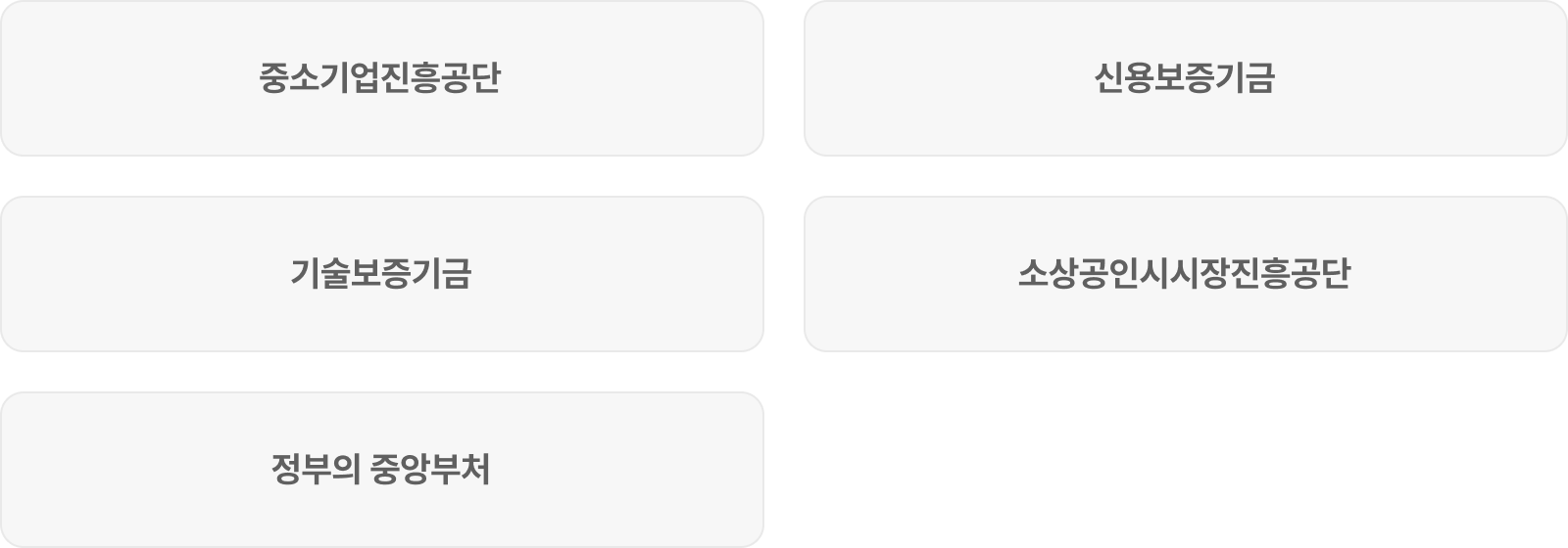 중소벤처기업진흥공단, 신용보증기금, 기술보증기금,