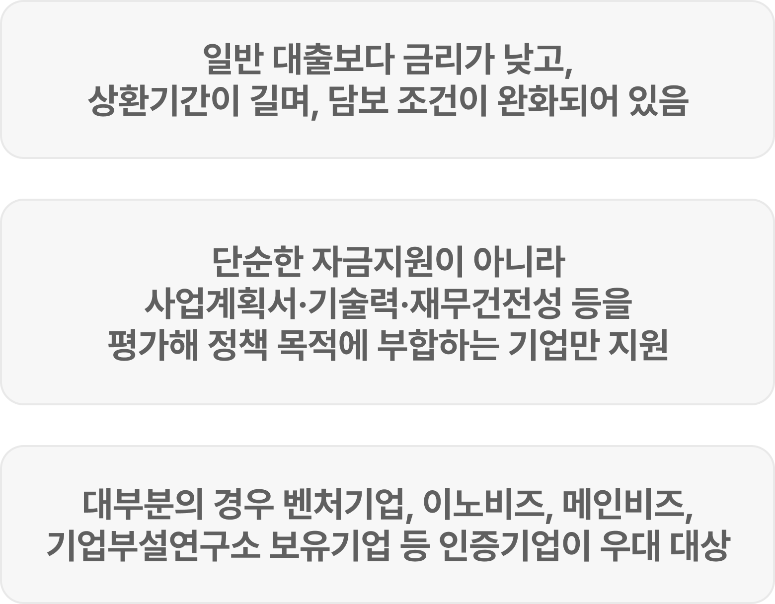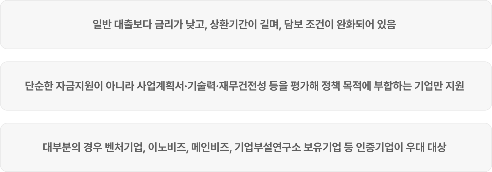 또한 단순한 금융지원이 아니라, 정부의 정책 방향(창업, 고용, 기술혁신 등)에 따라